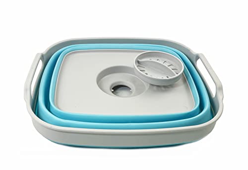 SAMMART 7.5L Collapsible Dishpan with Draining Plug - Foldable Washing Basin - Portable Dish Washing Tub - Space Saving