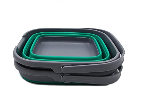 SAMMART 10L Collapsible Rectangular Handy Basket/Bucket (Bluish-Green + Black)