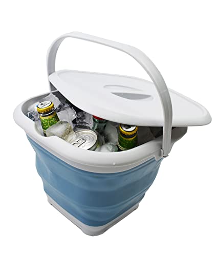 SAMMART 8.5L Collapsible Square Handy Bucket with Lid/Foldable SquareWater Pail with Lid/Portable Tub with Handle and Lid. Size 31x31cm