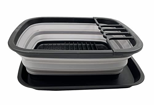 SAMMART Collapsible Plastic Dish Drainer with Drainer Board-Foldable Drying Rack Set-Portable Dinnerware Organizer-Space Saving Kitchen Storage Tray (Black/Alloy Grey)