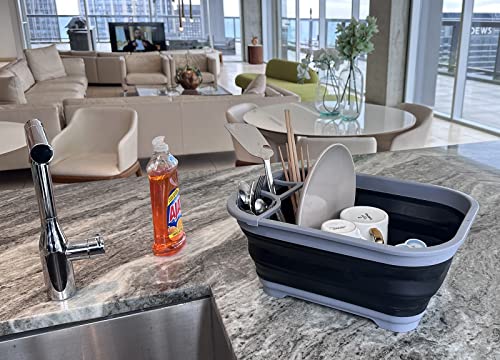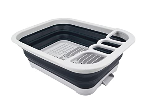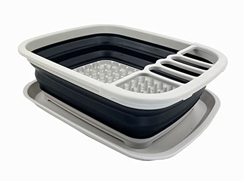 SAMMART Collapsible Plastic Dish Drainer with Drainer Board-Foldable Drying Rack Set-Portable Dinnerware Organizer-Space Saving Kitchen Storage Tray (Grey/Slate Grey)