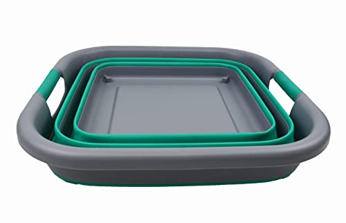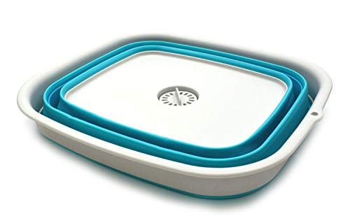 SAMMART 10L Collapsible Dishpan with Draining Plug - Foldable Washing Basin - Portable Dish Washing Tub - Space Saving Kitchen Storage Tray