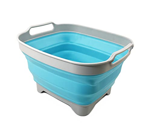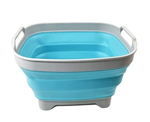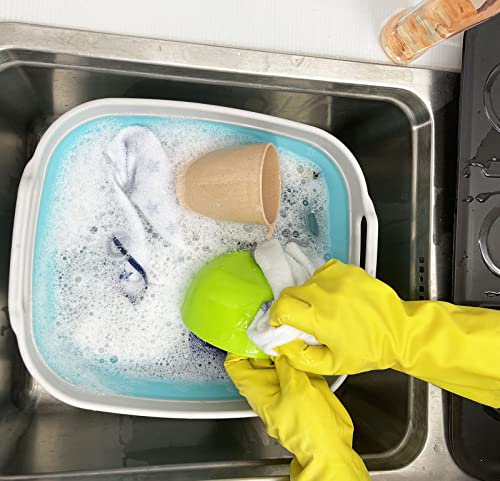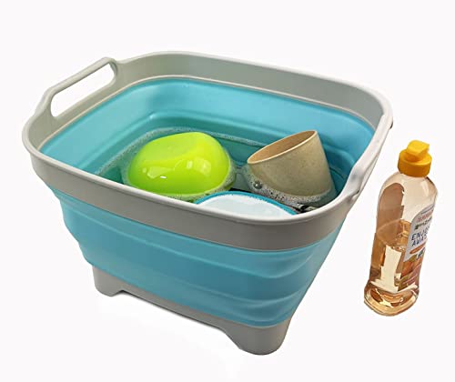 SAMMART 7.5L Collapsible Dishpan with Draining Plug - Foldable Washing Basin - Portable Dish Washing Tub - Space Saving
